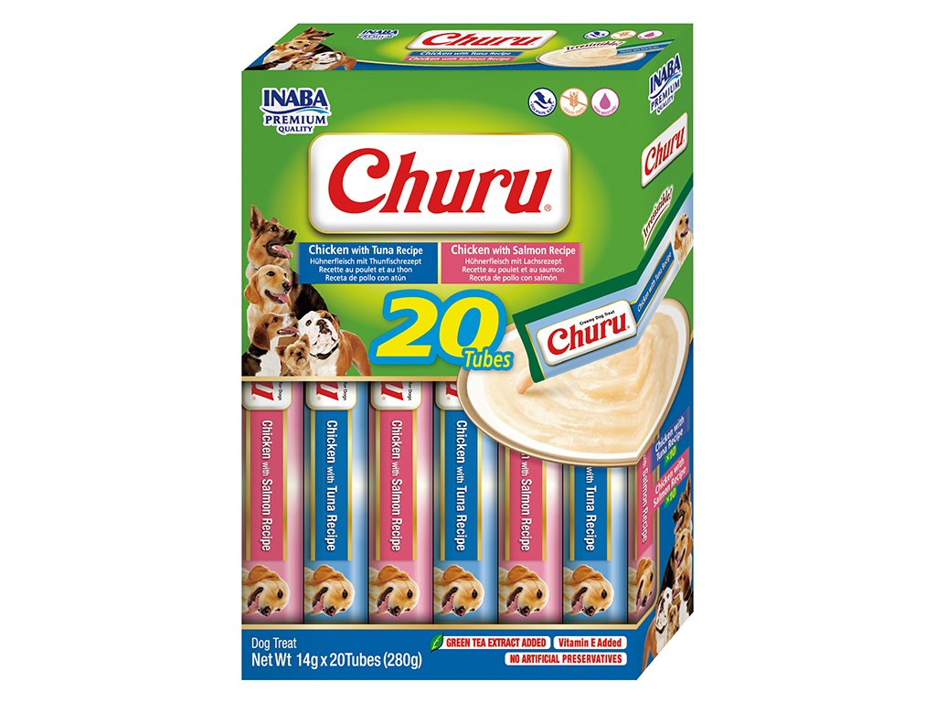Churu masové pyré pro psy s kuřecím z farmářského chovu a divokým mořským tuňákem. Lahodný, přírodní pamlsek krémové konzistence bez obilovin. Zdravé mlsání s nízkým obsahem kalorií, bez konzervantů, chemických aromat, bez barviv a umělých dochucovadel. Díky unikátní krémové konzistenci pamlsku Churu objevíte nový způsob odměňování vašeho mazlíčka a chvíle s pochoutkami Churu budou bavit vás i vašeho psa! S Churu budete trávit čas s vaším čtyřnohým kamarádem hravým a interaktivním způsobem. Churu masové pyré můžete podávat přímo z ruky, samostatně z misky nebo společně s granulemi pro vylepšení jejich chuti. Pamlsky Churu mají vysoký obsah vody a díky tomu jsou vhodným doplňkem k suchému krmivu, pro pohotovostní doplnění tekutin a pro psy, kteří málo pijí. Pamlsky Churu jsou 100% přírodní a zdravé mlsání pro psy všech věkových kategorií. Churu jsou ideální pro ukrytí tablety na odčervení či jiného léku, který je potřeba psovi nenásilně podat.