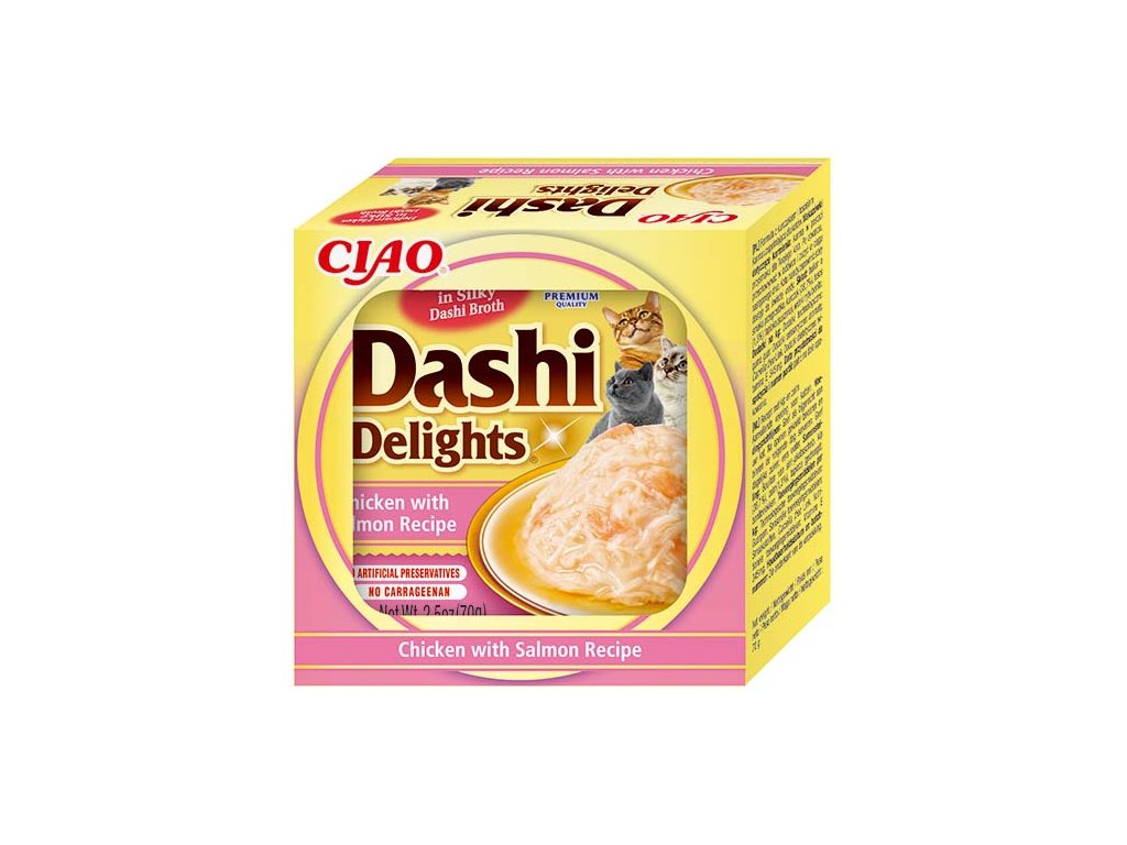 Dashi je tradiční japonský rybí vývar z tuňákových vloček, který je známý svou vyjímečnou, lahodnou chutí. Zařazení Dashi do jídelníčku vaší kočky může dodat krmení nový rozměr a učinit ho vyjímečným zážitkem. Nejde jen o chuť - dashi může poskytnout i důležité živiny včetně vitaminů a minerálů. Dashi má nízký obsah kalorií a tuku, takže je zdravým doplňkem stravy vaší kočky. Je to produkt na bázi vývaru, což znamená, že obsahuje vysoké množství vody a tím pomáhá udržet zdraví vaší kočky. Dashi se může stát chutným a výživným doplňkem stravy vaší kočky, který si díky její neodolatelné chuti určitě zamiluje. Všechny produkty Inaba jsou vždy bez obilovin, zbytečných ingrediencí a pochybných přísad a jsou vyrobené z pravého mořského tuňáka a kuřat chovaných na farmách.