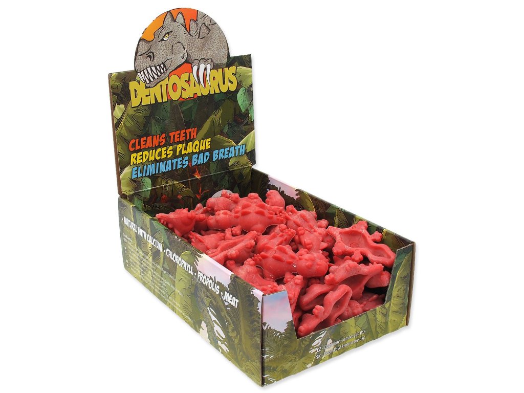Dentální pochoutky ve tvaru dinosaurů se šunkovou příchutí