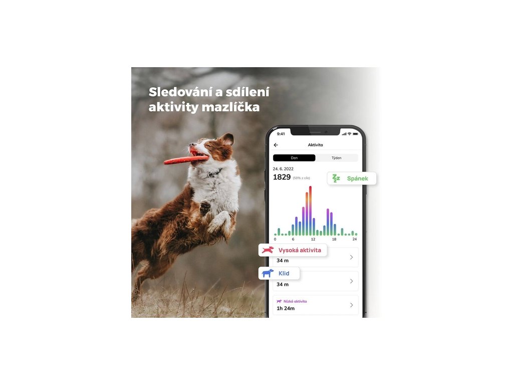 Sledování spánku a aktivity pomocí vestavěného akcelerometru. Tímto způsobem budete vědět, jak je váš mazlíček aktivní, jak často odpočívá. Můžete porovnávat aktivity vašeho mazlíčka s ostatními pejsky a kočičkami a zjistit, jak si váš chlupáč vede.