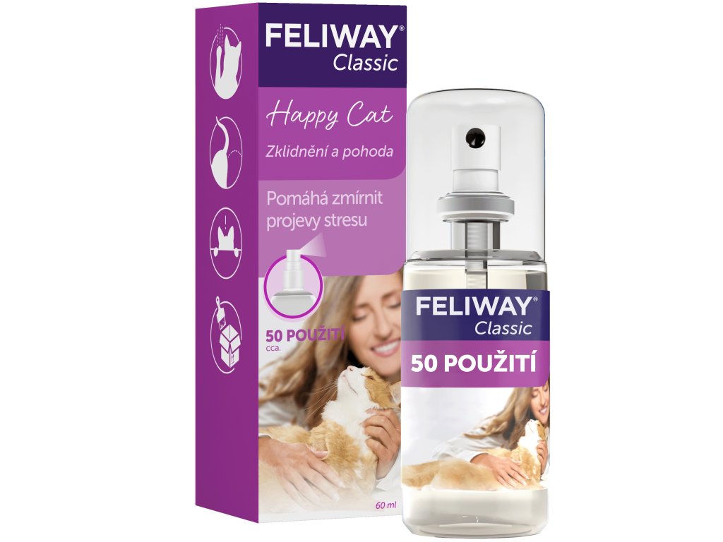 - Napodobuje kočičí tvářový feromon, který zabezpečuje kočce stav pohody a klidu