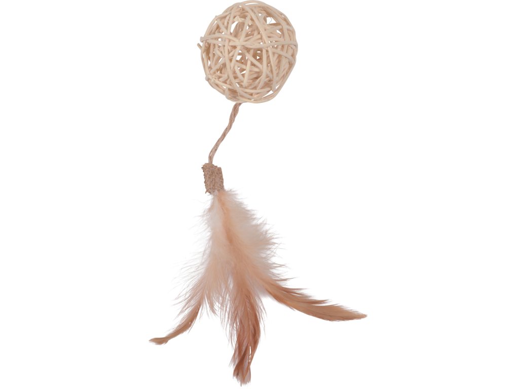Hračka pro kočky, 100% přírodního původu - rákos, jutové spoje, peří a švy z bavlny.