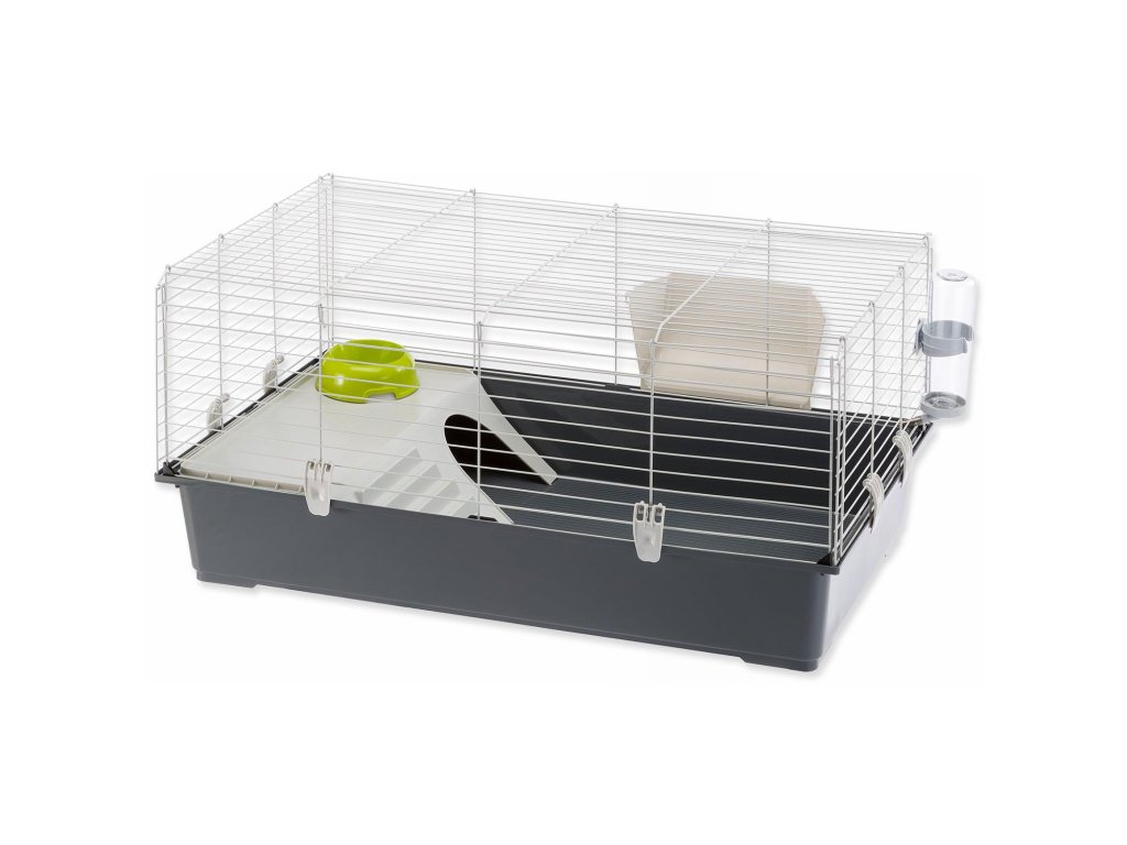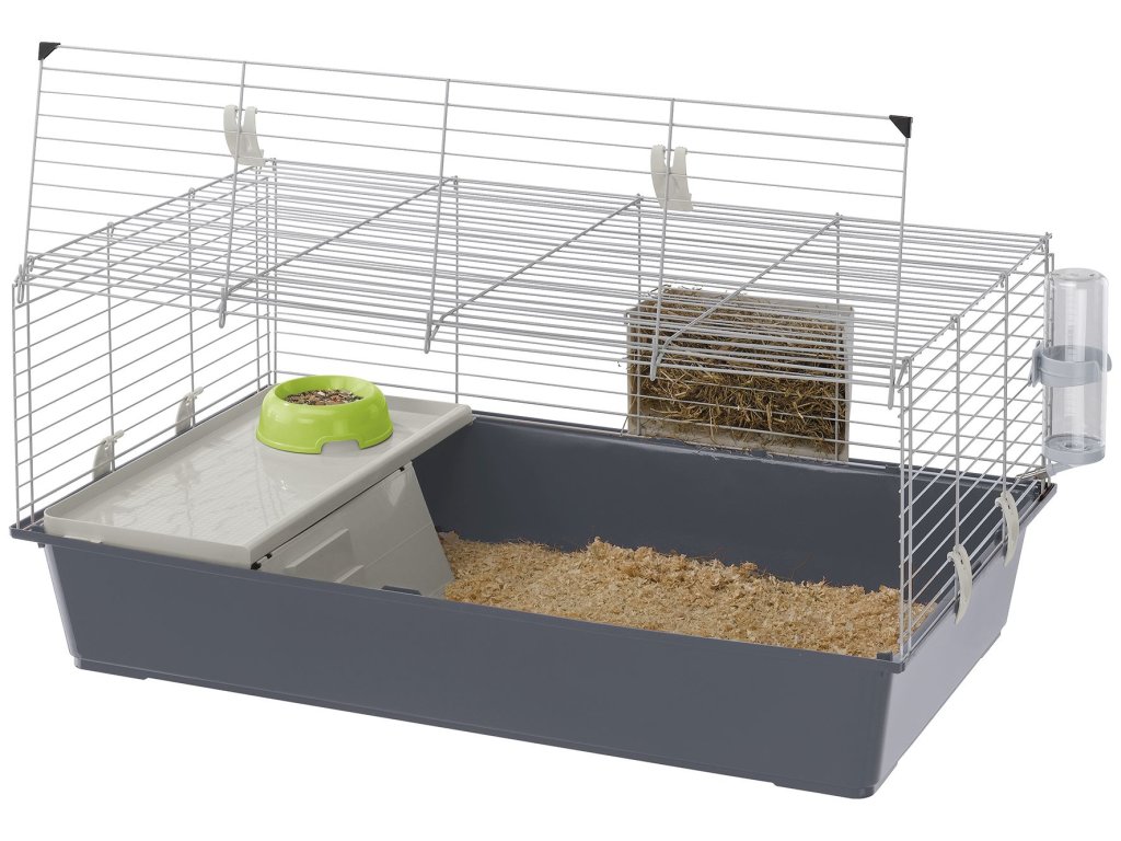 Ideální pro králíky a morčata, RABBIT 100 má plastové dno, na kterém je umístěna kovová síťka. Síť je potažena speciální antikorozní barvou a lze ji z přední strany zcela zvednout pro snadnější přístup. To také usnadňuje každodenní čištění. Pro hlubší čištění jednoduše oddělte dno vyháknutím zaklapávacích klapek na stranách, které byly navrženy pro extra bezpečnost.