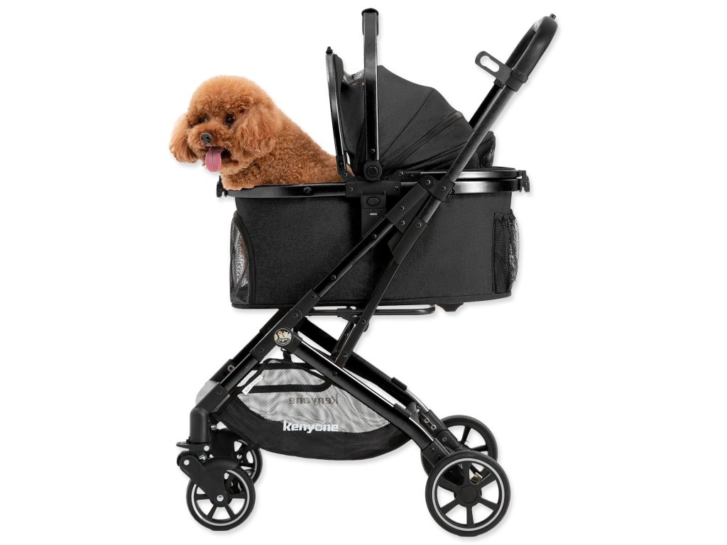 - Univerzální využití: Kočárek se skládá ze dvou částí: rámu a nosiče. Při společném použití se jedná o multifunkční a stylový kočárek pro psy. Pokud je nosič používán samostatně, lze jej použít jako mobilní přepravku a přepravku pro auta. Přepravka pro domácí mazlíčky je vybavena bočním postrojem a bezpečnostní přezkou, která zajišťuje bezpečnost vašeho mazlíčka při používání v autě.