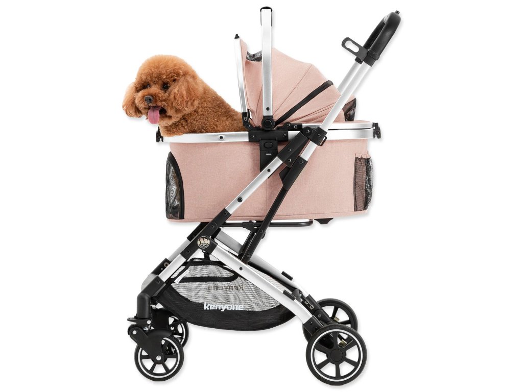 - Univerzální využití: Kočárek se skládá ze dvou částí: rámu a nosiče. Při společném použití se jedná o multifunkční a stylový kočárek pro psy. Pokud je nosič používán samostatně, lze jej použít jako mobilní přepravku a přepravku pro auta. Přepravka pro domácí mazlíčky je vybavena bočním postrojem a bezpečnostní přezkou, která zajišťuje bezpečnost vašeho mazlíčka při používání v autě.