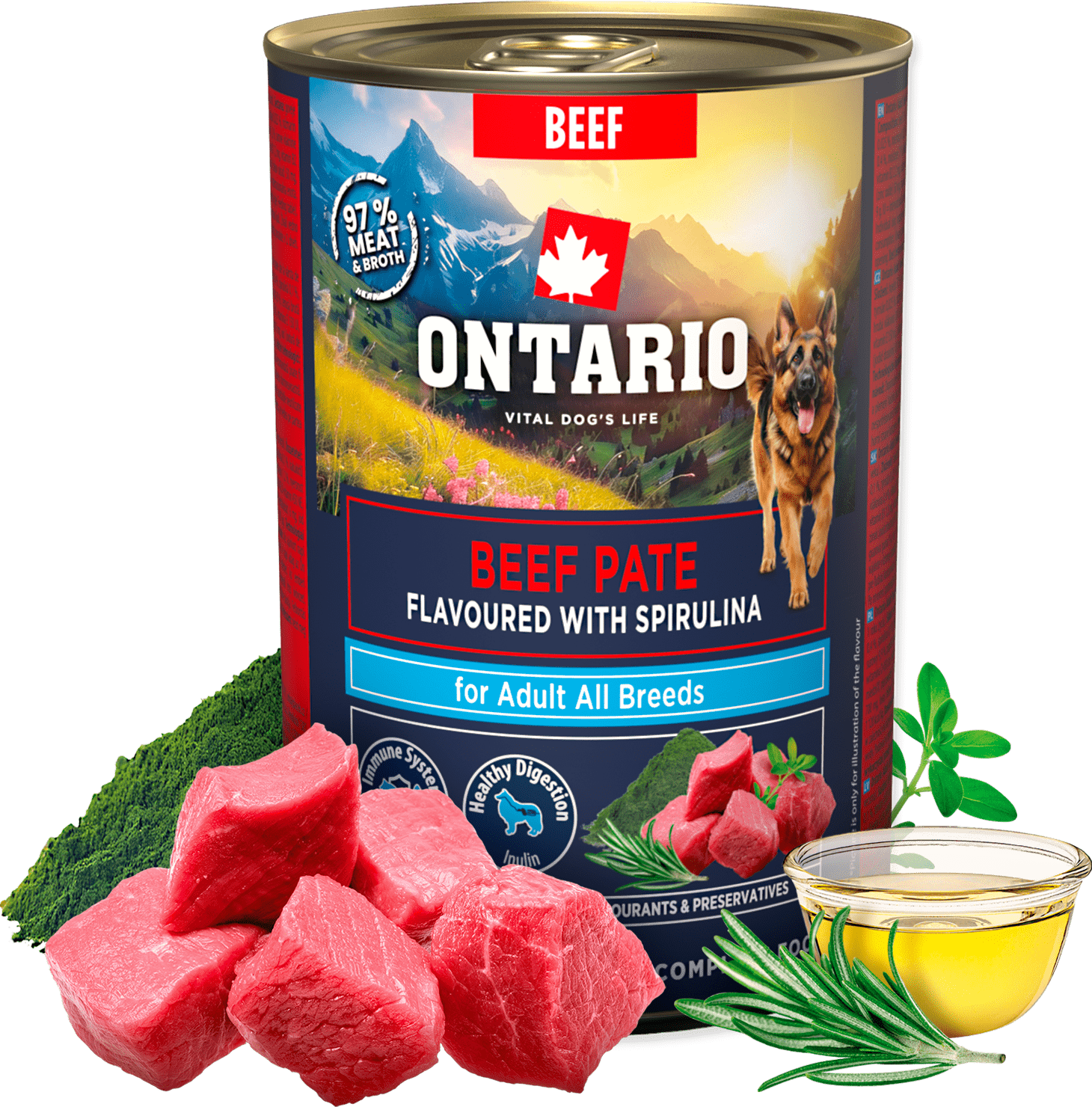 Dopřejte svému parťákovi plnohodnotnou výživu plnou lásky a poctivých surovin. Naše nové hovězí pate Ontario spojuje 97 % masa a vývaru se spirulinou pro silnou imunitu a vitalitu. Protože váš aktivní člen rodiny si zaslouží to nejlepší pro každý den.