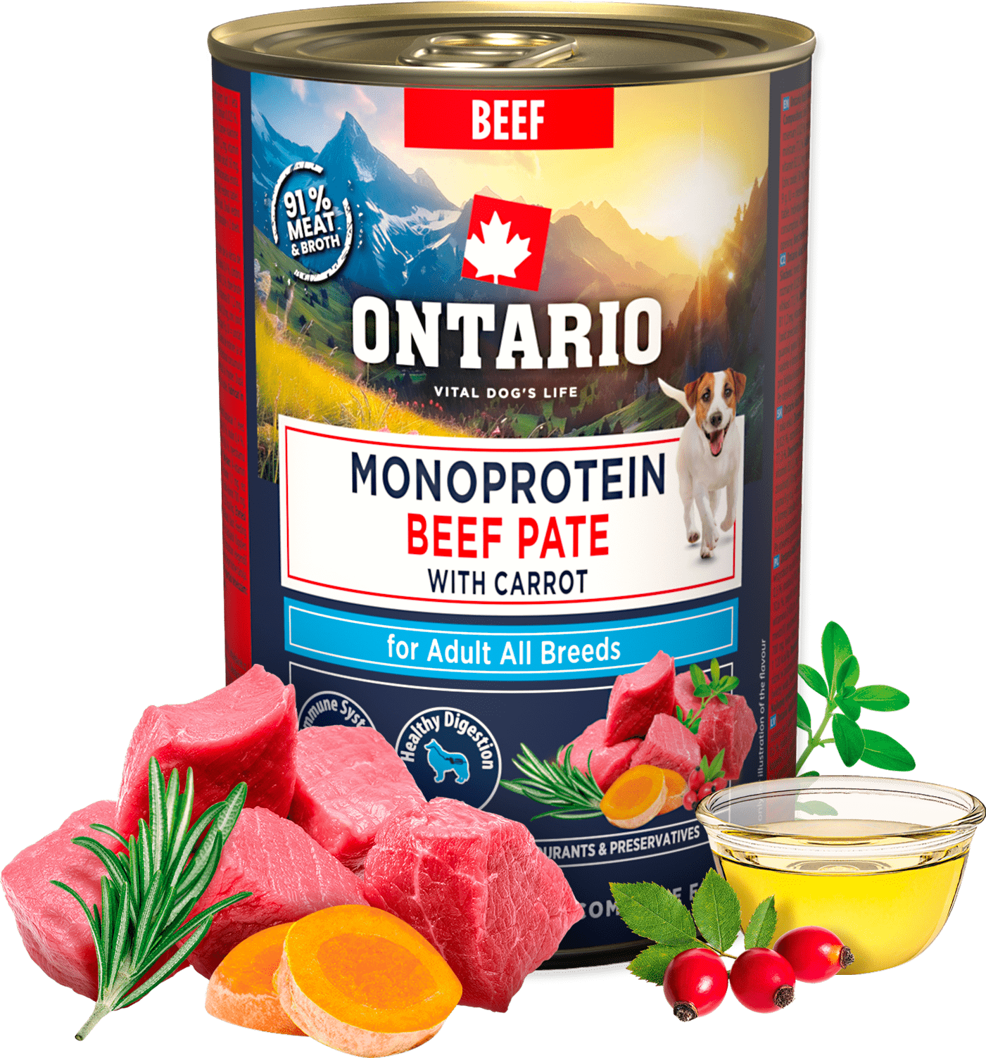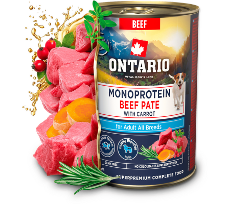 Tip od Odborníka: Toto monoproteinové pate je základním kamenem jídelníčku pro psy s potravinovou alergií nebo intolerancí. Hovězí je výživné a v kombinaci s monoproteinovými granulemi Ontario tvoří dokonalý, chutný a bezpečný jídelníček.
